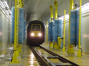 鐵路列車自動(dòng)清洗機(jī)可實(shí)現(xiàn)對(duì)列車車廂、火車頭等外面進(jìn)行全面、徹底的自動(dòng)清洗,設(shè)備主要由噴淋系統(tǒng)、洗刷系統(tǒng)、干燥系統(tǒng)、水處理系統(tǒng)(選配)、預(yù)警系統(tǒng)及控制系統(tǒng)等組成,可通過噴淋濕潤(rùn)、預(yù)備洗刷、洗滌洗刷、漂洗洗刷和吹掃干燥等不同的清潔方式,配合列車勻速通過清洗工作場(chǎng)地除去列車表面的塵埃和污垢,達(dá)到運(yùn)營(yíng)列車潔凈要求。[查看詳情]